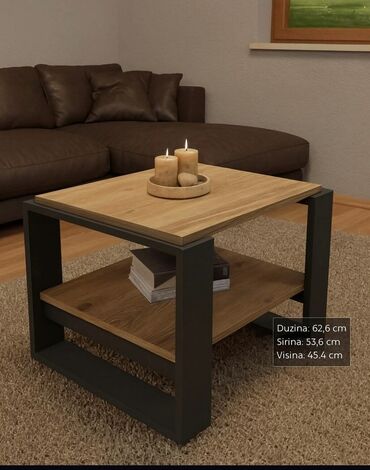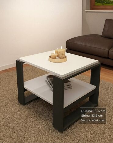 - Kvadratna gornja ploča sa dodatnom donjom policom za odlaganje časopisa, daljinskih upravljača ili dekoracije