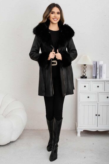 Ženska zimska jakna/kaput sa krznom - Boja: crna, visokog sjaja -