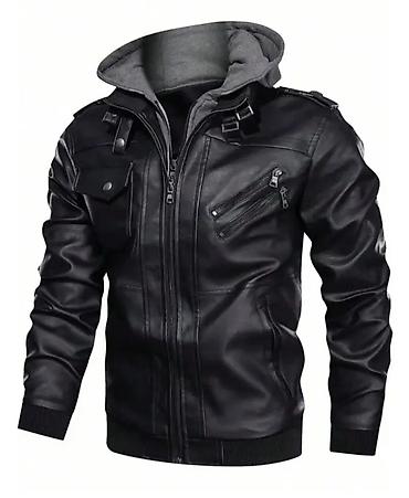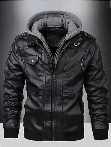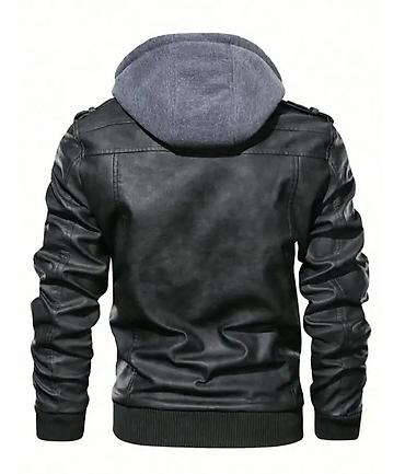 Muška crna biker jakna sa kapuljačom - Materijal: crna eko koža