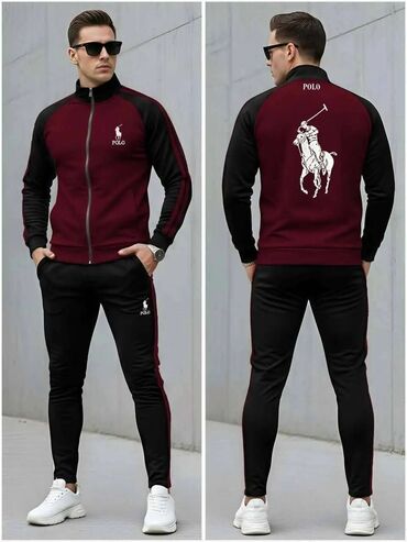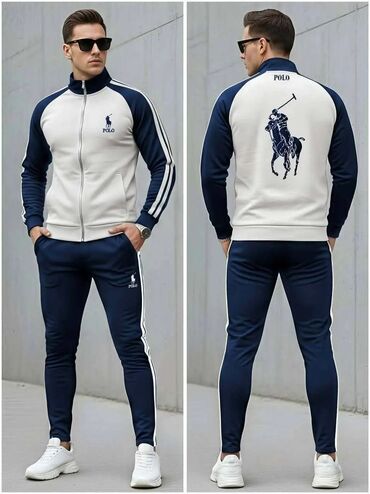 - Dizajn: klasični sportski set sa visokim okovratnikom, raglan rukavima i prugama duž rukava i nogavica. Diskretni logo napred, veliki polo motiv na leđima.