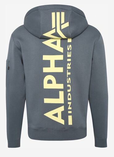 - Veliki vertikalni Alpha Industries print na leđima; manji logo na grudima