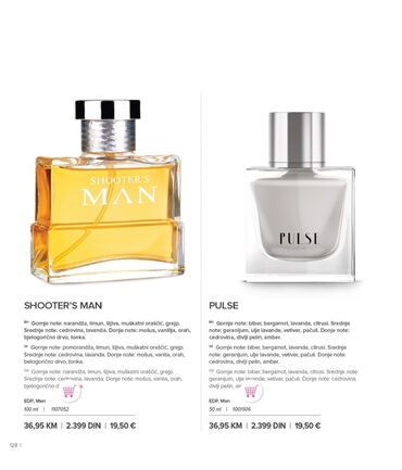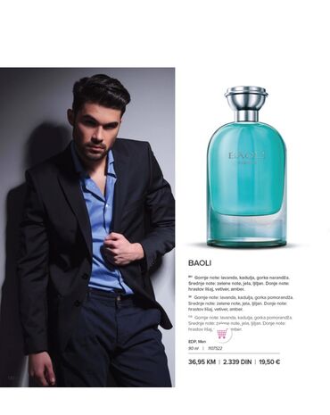 Farmasi parfemi – kolekcija za žene i muškarce (EDP) Muški: - No. 70 (EDP, 80 ml): gornje note limun, grejpfrut, zelena jabuka; srednje note orah, perunika, cedrovina; donje note tonka, amber, moš...
