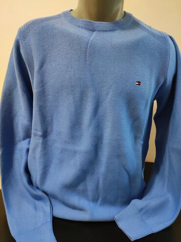 - Dva glatko pletena modela sa sitnim izvezenim logoom na levoj strani grudi: beli sa V-izrezom i svetloplavi sa okruglim izrezom