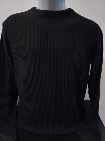 - Dva rebrasto pletena modela u tamnim tonovima (tamno plava i crna) sa diskretnim ton-na-ton izvezenim amblemom na prsima i okruglim izrezom