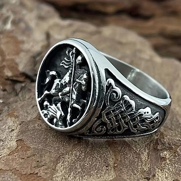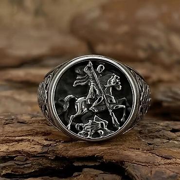 Muški masivni prsten sa reljefnim motivom viteza na konju