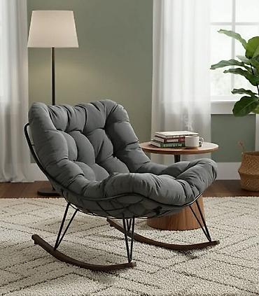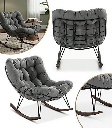 - Dizajn: moderna njihajuća fotelja sa dubokim, školjkastim sedištem i naglašenim prošivima za dodatnu udobnost.