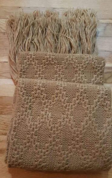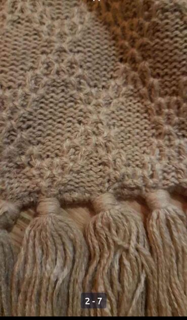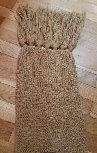 Sivi ženski šal/ševa od laganog, prozračnog tkanja. Dimenzije: 160 x 60 cm (naznačeno na fotografiji). Teksturisan materijal sa diskretnim ukrasnim čvorovima/tačkicama po površini i resama na kraje...