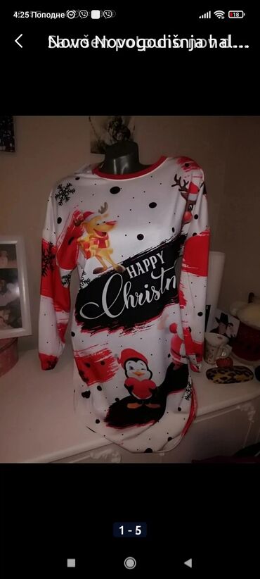 Ženska tunika/džemper sa dugim rukavima u crveno-crnoj kombinaciji. Prednji deo preovlađuje leopard uzorak, dok su rukavi i donji deo sa horizontalnim prugama. Okrugli izrez. Na prednjoj strani se ...