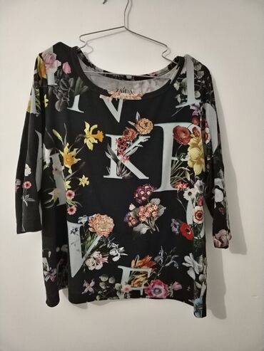 Ženska karirana košulja/bluza dugih rukava - Crna osnova sa sitnim kariranim šarama u braon/ružičastim tonovima - V-izrez bez klasične kragne (stoj-kolina), blago otvoren - Asimetrična polukopča s...