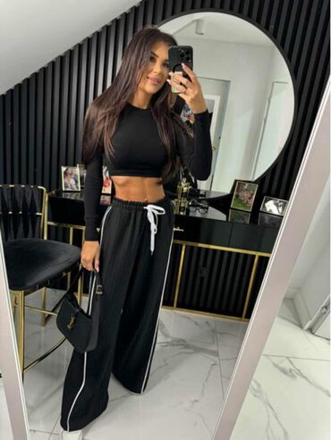 ZARA ženske pantalone – model sa širokim nogavicama - Boja: crna - Kroj: široke nogavice, ravnog pada - Struk: elastičan sa učkurom/pertlom za podešavanje - Veličina: M (EU M / USA M / MEX 28) - M...600 RSD