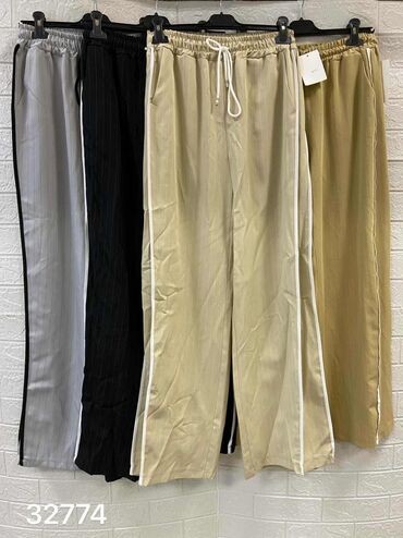 Sive ženske pantalone sa prugama – Kübra Woman’s Wear - Model/kod: 6019 - Veličina: 40 - Kroj: klasičan sa visokim strukom, pojas sa trakama/mašnom za vezivanje, nabori na prednjem delu - Dizajn: ...1 800 RSD