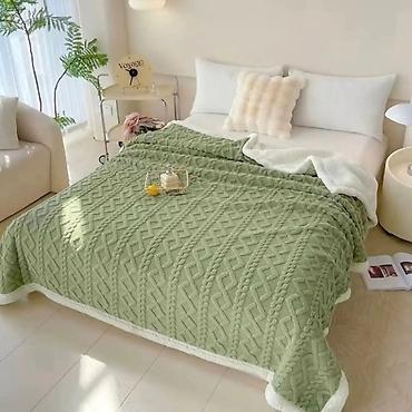 Plišano-rebrasto dvostrano ćebe/ prekrivač za krevet duplo ćebe
