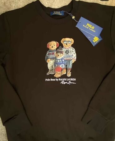 - Prednji print: tri Polo Bear medveda u zimskim džemperima, ispod natpis “Polo Bear by RALPH LAUREN” sa potpisom