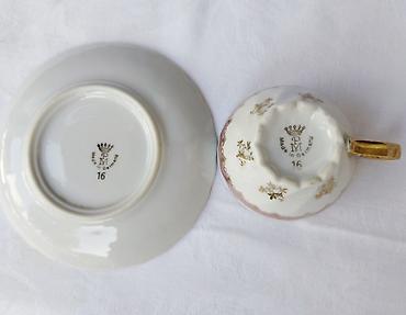 - Poreklо: Made in Germany (PM, žig sa krunom, broj 16 na dnu šoljica i tacnica)