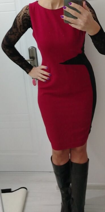Prelepa BORDO haljina sa crnim detaljem, vel M, zakopčava se pozadi, fantastično stoji, haljina je bez rukava.