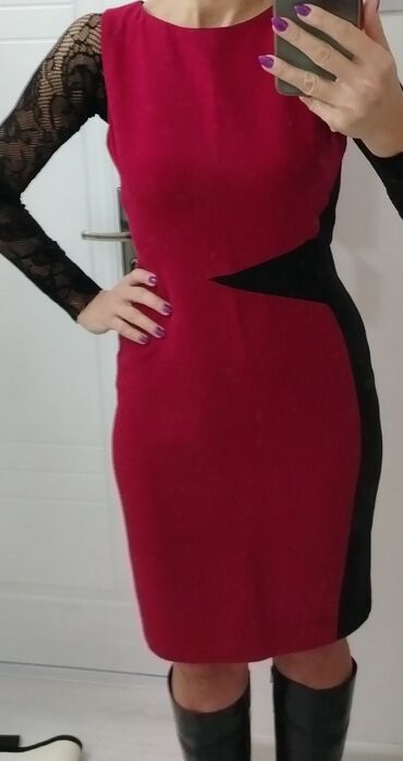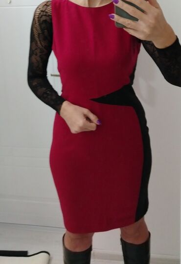 Prelepa BORDO haljina sa crnim detaljem, vel M, zakopčava se pozadi