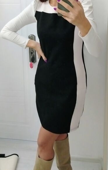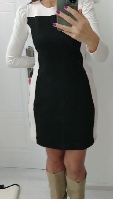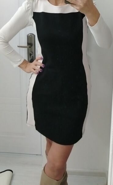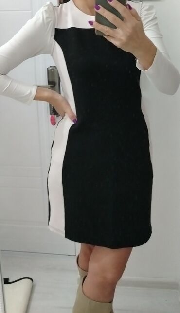 Prelepa crno bela haljina brenda c&a, vel L, ima puno elastina i