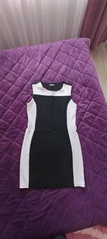 LPrelepa crno bela haljina brenda c&a, vel L, ima puno elastina i dosta se rasteže. Haljina je bez rukava.