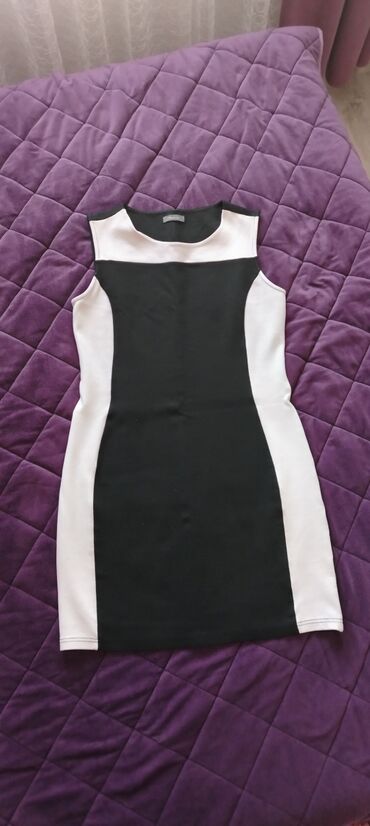 Prelepa haljina brenda C&A, crna sa belim, vel L ili 40, a pošto ima puno elastina, odgovara i 42.
