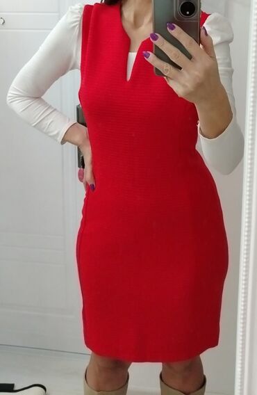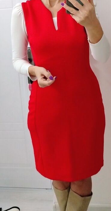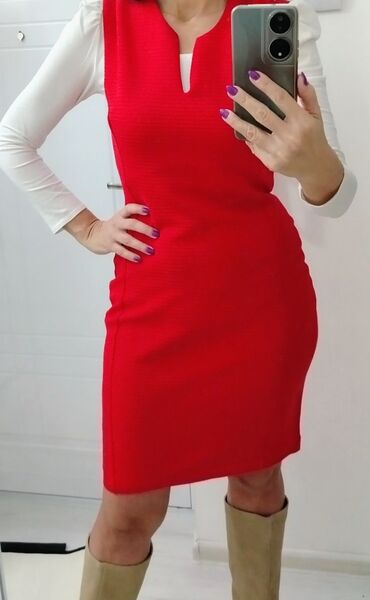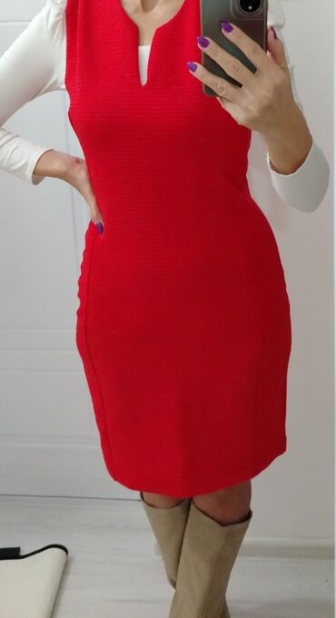 Crna haljina bez rukava – be you - Brend: be you (etiketa prisutna) - Model: ravna mini/ do kolena, okrugli izrez - Boja: crna - Džepovi: dva ukoso ušivena prednja džepa - Veličina: 10 (oznaka na ...