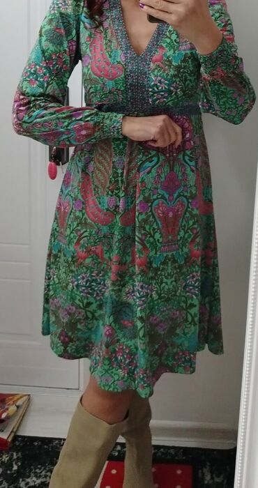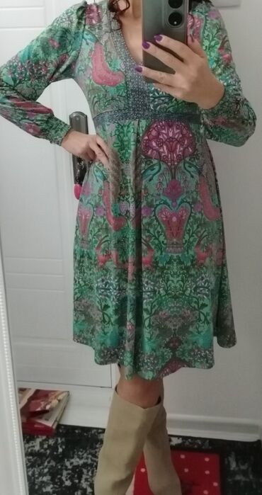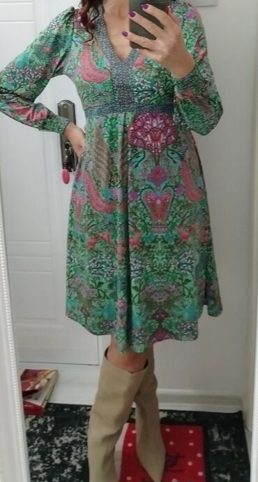 Prelepa šarena haljina dugih rukava, vel M, ali ima puno elastina i