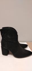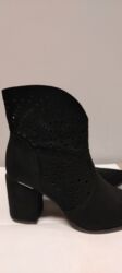 O trošku kupcaPrelepe crne kaubojke, gornji deo je rupišast, vel 40, gazište 26cm, štikla 6cm, odlično si očuvane, par puta nošene.