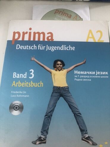 - Радна свеска: „prima – Deutsch für Jugendliche, Band 3 Arbeitsbuch“, са означеним „CD аудио“ пратећим садржајем. Обележено као „Немачки језик за 7. разред основне школе – Радна свеска“. Аутори исти: Friederike Jin и Lutz Rohrmann.