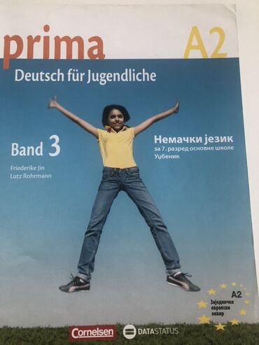 - Уџбеник: „prima – Deutsch für Jugendliche, Band 3“, аутори Friederike Jin и Lutz Rohrmann. Обележено као „Немачки језик за 7. разред основне школе – Уџбеник“. Издавачи: Cornelsen и DATASTATUS. Усклађено са Заједничким европским оквиром – ниво A2.
