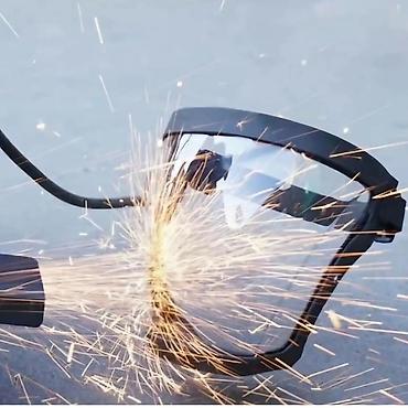- Otporan na udarce: čvrsta providna ploča (polikarbonat/PC tip) dizajnirana da izdrži mehaničke čestice i sitne fragmente pri brušenju, sečenju i drugim radovima.