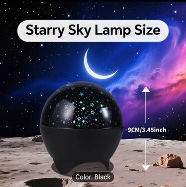 - Kompaktna sferna projektorska lampa koja stvara efekat zvezdanog neba sa mesecom i zvezdama po plafonu i zidovima.
