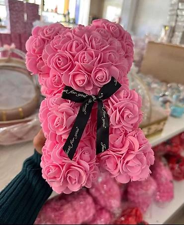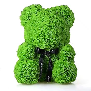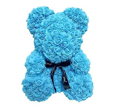 - Unikatna dekoracija u obliku medvedića, kompletno izrađena od gusto raspoređenih ružica od kvalitetne pene (foam roses).