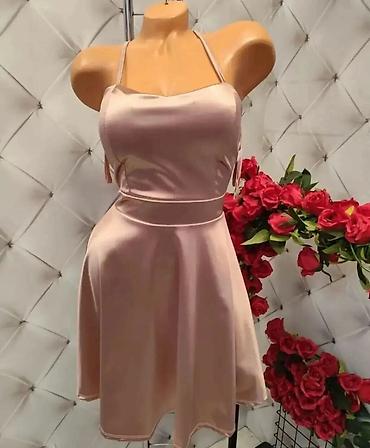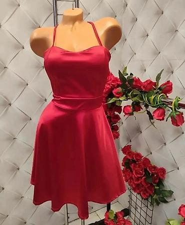 Satenska mini haljina na tanke bretele - Model: kratka A-kroja sa