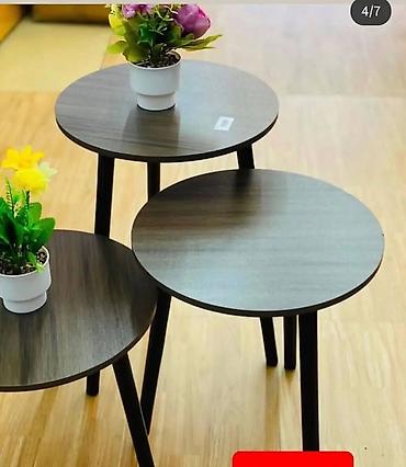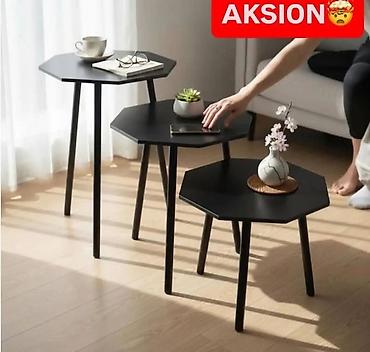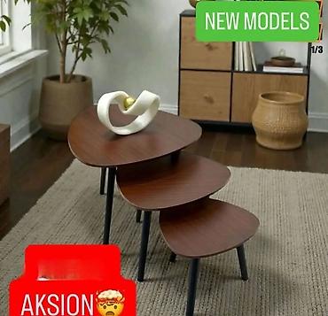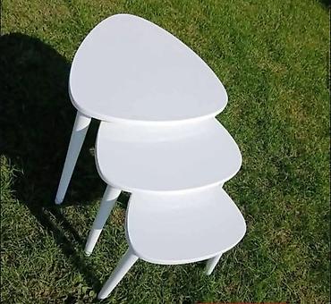 - Moderan dizajn: tri stočića različitih dimenzija koji se mogu slagati jedan ispod drugog ili rasporediti pojedinačno. Organske „kap“ ploče i varijanta sa osmostranim pločama pružaju savremen izgled.