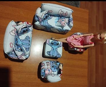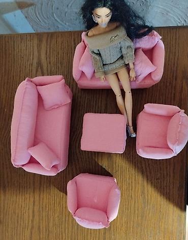 - Komplet uključuje: 2 mini sofe, 2 mini fotelje i tabure/stočić, uz male jastučiće za svaku garnituru.