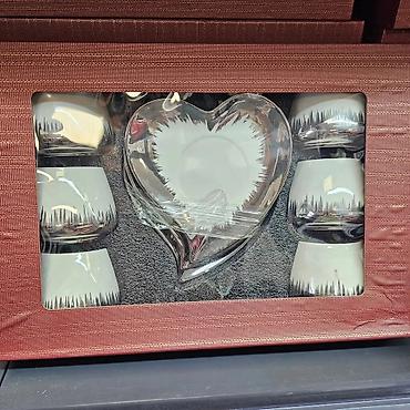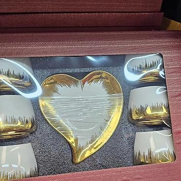 - 1 velika staklena tacna u obliku srca, zlatne boje