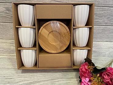 - Sadržaj seta: 6 šoljica + 6 tacni