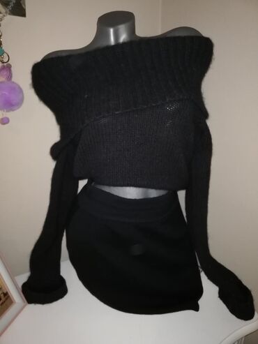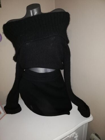 Dvodijelni ženski pleteni komplet – duks i pantalone širokih nogavica. - Materijal: mekani pleteni triko, elastičan i udoban za celodnevno nošenje. - Gornji deo: ravni okrugli izrez, spuštena rame...