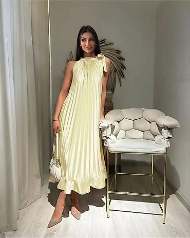 Svečana plisirana haljina od satena – midi dužina
