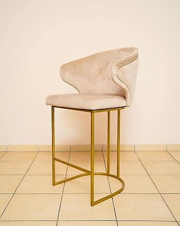 Postolje od metala u zlatnoj završnoj obradi, sa stabilnom polukružnom bazom i ravnim profilima. Minimalistička silueta postolja vizuelno je lagana, a pruža čvrstu podršku. Pogodna za kuhinjski šank, bar ili trpezarijski šank-ostrvu.