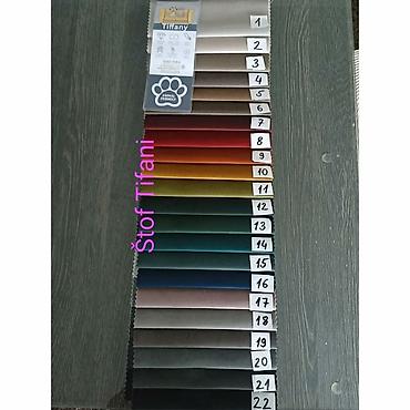- Presvlaka: mek, baršunast štof “Tifani” – animal friendly, dostupan u širokoj paleti boja (označene brojevima 1–22 na uzorku).