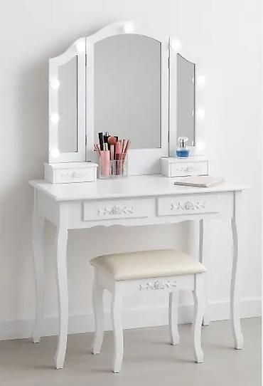 Toaletni sto sa ogledalom i rasvetom - Elegantna bela konzola sa