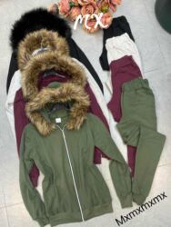 Damski komplet trenerke sa kapuljačom i krznom - Dvodijelni set: dukserica na rajsferšlus + donji deo trenerke. - Kapuljača sa obodom od veštačkog krzna (više nijansi krzna prikazano). - Materijal...