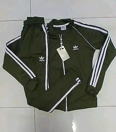- Donji deo: elastičan pojas sa učkurićem, ravne nogavice sa bočnim prugama, džepovi; Adidas Trefoil logo