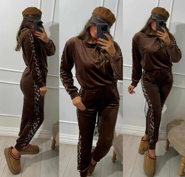 Dvoslojni sportski komplet “alo” – tamno braon - Sastav kompleta: dukser bez kapuljače sa okruglim izrezom + donji deo trenerke sa lastišem u struku i učkurima. - Materijal: glatka, meka sportska ...