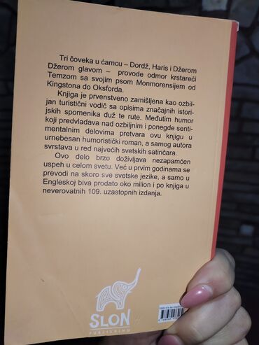 Tri čoveka u čamcu o psu i da ne govorimo" i ime autora "Džerom K. Džerom". Izdavač je "SLON".