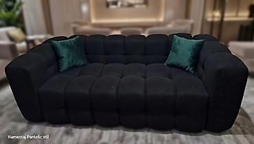 - Dimenzije: približno trosed standardne širine, široki nasloni i masivna baza za stabilan izgled.