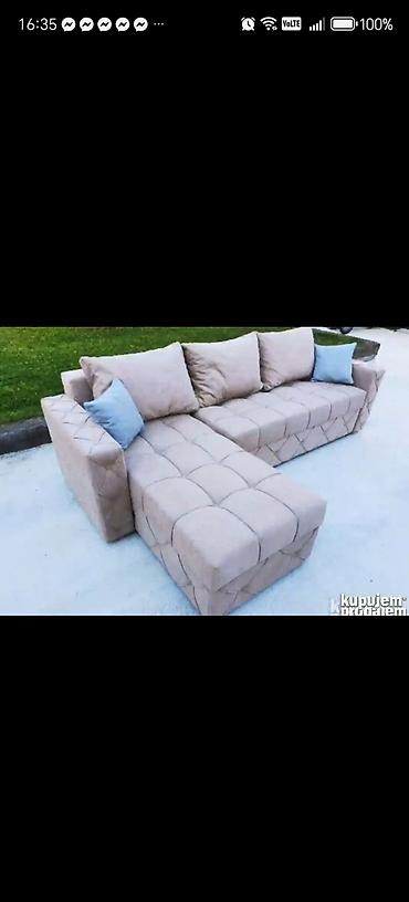 - Dizajn: moderna ugaona sofa sa izrazitim prošivima po sedalnom delu i bočnim stranicama. Nasloni i rukonasloni puniji, ravnih linija.