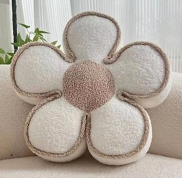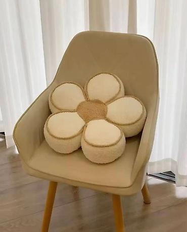 - Dizajn: veliki jastuk u obliku cveta sa pet latica; centralni krug i rubovi latica u kontrastnoj bež/boji peska.