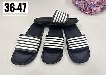 - Model: klasične klizne papuče sa širokim gornjim remenom u prugama