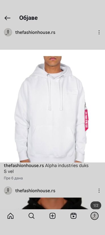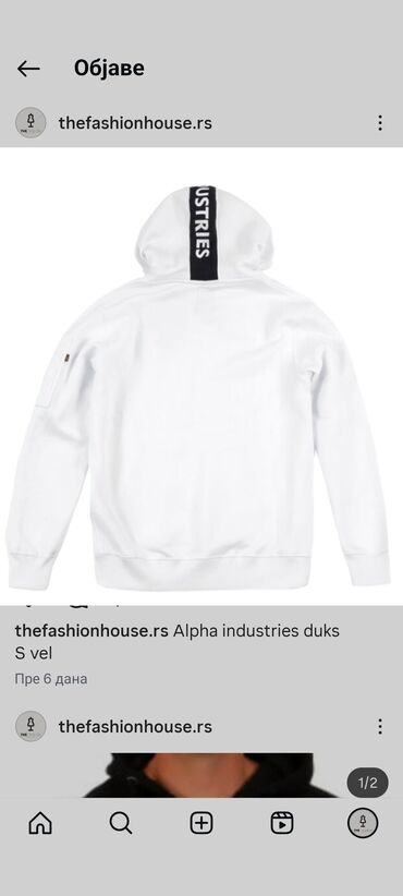 Alpha Industries dukserica s kapuljačom – veličina S, bela.